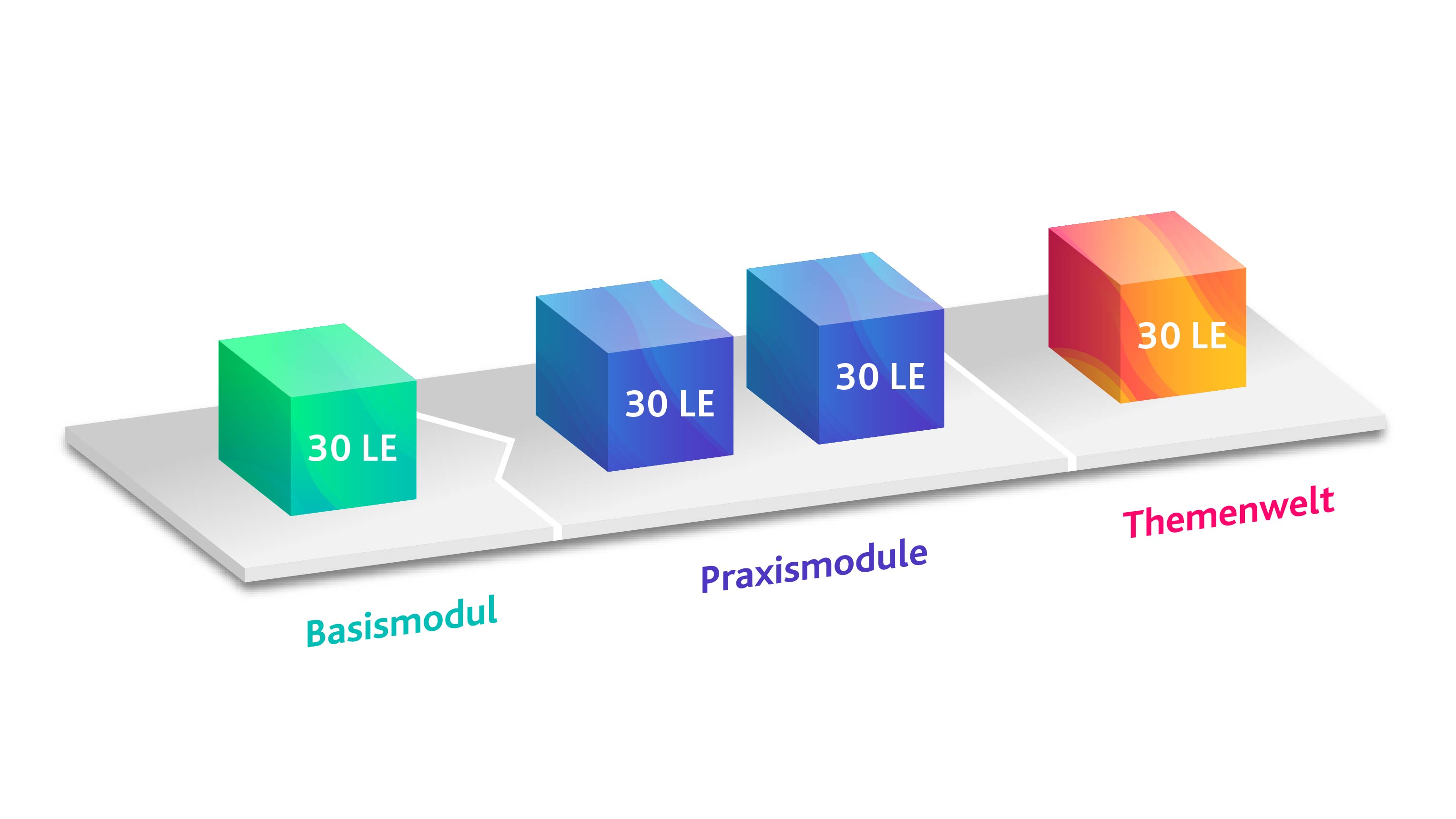 - Diese modulare Ausbildung umfasst 4 Bausteine mit jeweils 30 Lerneinheiten innerhalb von 2 Jahren.